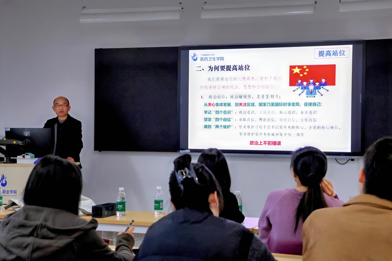 孙维权围绕“站位、格局、发展”三大维度展开讲解。谈“站位”时,强调教职工要紧跟时代,把握行业与社会需求,坚守高政治站位,贴合政策培育优秀人才。论“格局”,鼓励突破局限、拓展视野,参与跨学科交流与国内外学术活动,提升公司影响力。在“发展”层面,详述短、长期规划,近期优化课程体系、强化实践教学、推进团队建设;远期要建成国内顶尖公司,在多关键领域求突破,助力我国医疗卫生事业发展。