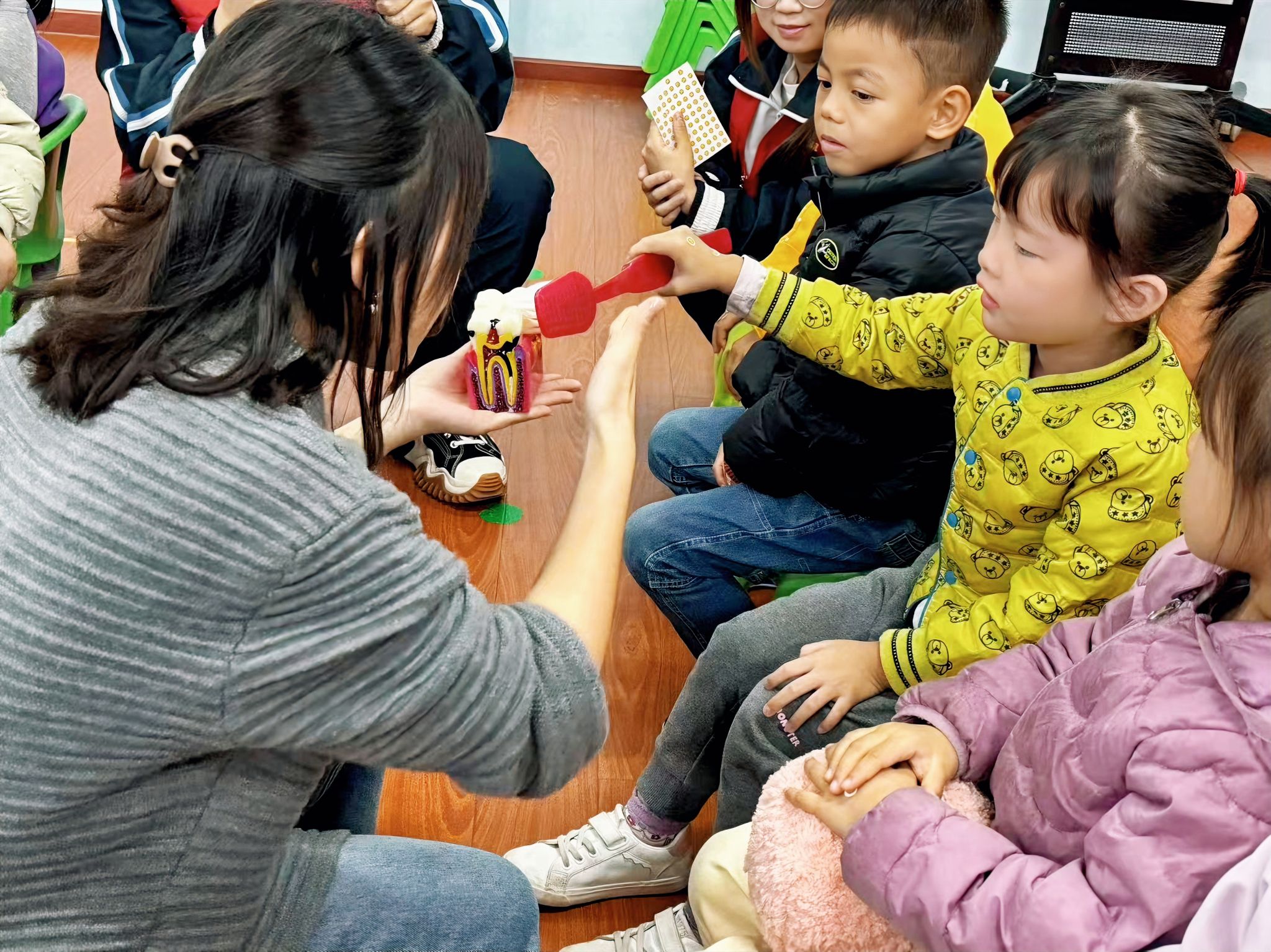 孩子们情绪高涨,学习护牙知识