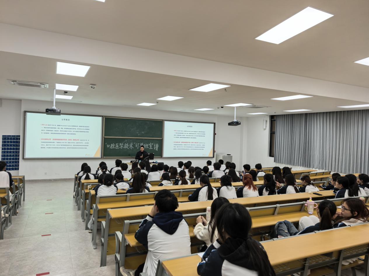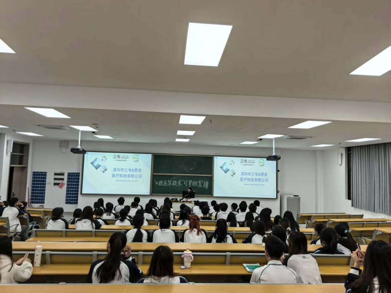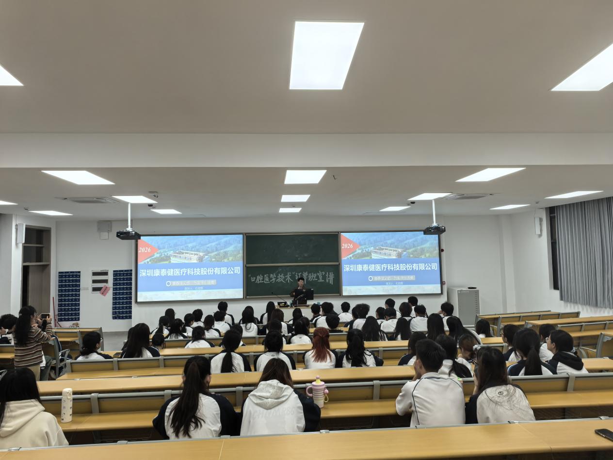 为深化产教融合、破解口腔医学技术行业人才供需结构性矛盾,11月26日,公司迎来深圳康泰健医疗科技股份有限公司、康泰健美医疗科技(深圳)有限公司、深圳市三专医疗科技有限公司三家行业领军企业,开展“1.5+1.5”订单班合作洽谈,并面向24级口腔专业员工举办专场宣讲会,吸引上百名学子到场咨询参与,现场互动热烈。