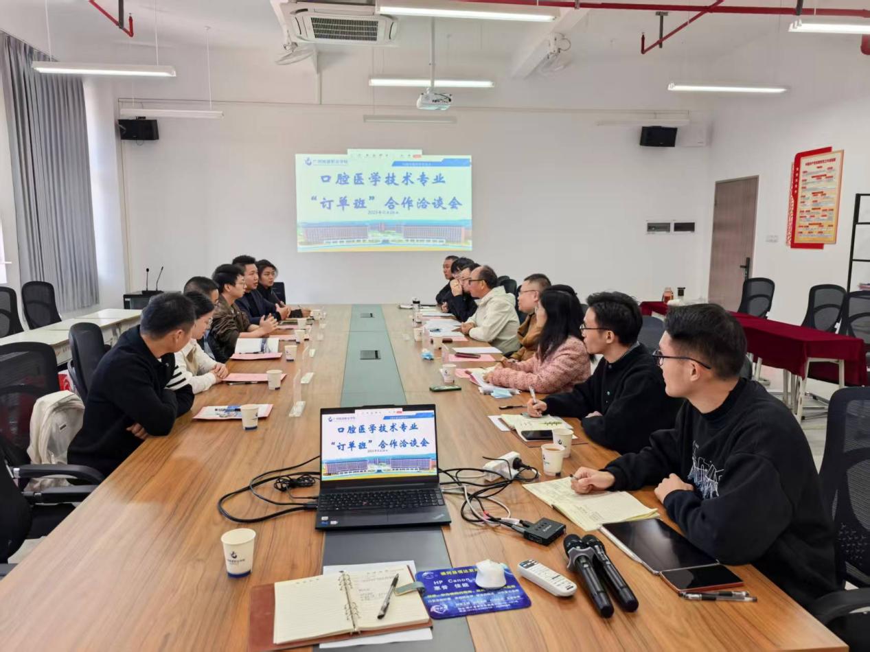 洽谈会上,校企双方围绕人才培养方案优化、课程体系共建、双导师团队组建等核心议题深入交流。根据“1.5+1.5”培养模式规划,员工前1.5年在校完成基础医学、口腔专业核心理论学习与基础技能实训,后1.5年进入企业参与顶岗实践,在真实生产场景中锤炼数字化义齿设计、精密修复体制作等核心技能,实现“理论筑基、实践赋能”的培养闭环。三方明确将共建实训基地、共享行业资源,推动教学内容与岗位标准精准对接,构建“人才共育、资源共享、发展共促”的协同育人机制。